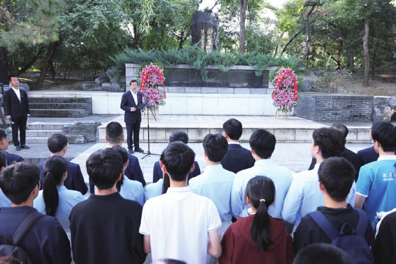 校党委书记邱勇代表全校师生,向为争取民族独立、人民解放和谋求民族复兴、人民幸福而英勇牺牲的先烈们,致以深切缅怀与崇高敬意。他表示,建校114年来,自强不息的清华人始终以国家至上、人民为先,用青春与热血为中华民族从站起来、富起来到强起来的伟大飞跃贡献力量。清华英烈的事迹和精神是中华民族历史天空中永不黯淡的星光,对先烈最好的告慰便是继承遗志、开创未来。面向建设社会主义现代化强国的关键时期,我们要弘扬伟大抗战精神与爱国奉献传统,砥砺刚健自强品质,创造无愧于祖国、人民与时代的新业绩。