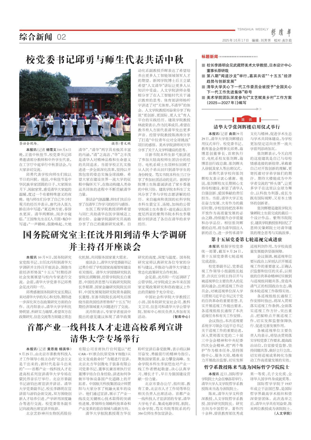 清华大学张剑辉楼启用仪式举行