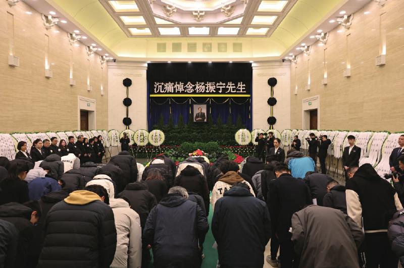 党和国家领导人,杨振宁先生亲属、生前友好,清华大学全体校领导、师生校友和社会各界人士前往送别。大家在哀乐声中缓步来到杨振宁先生的遗体前肃立默哀,向杨振宁先生的遗体三鞠躬,并向杨振宁先生亲属表示深切慰问。
