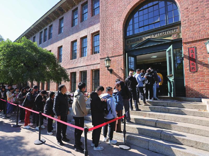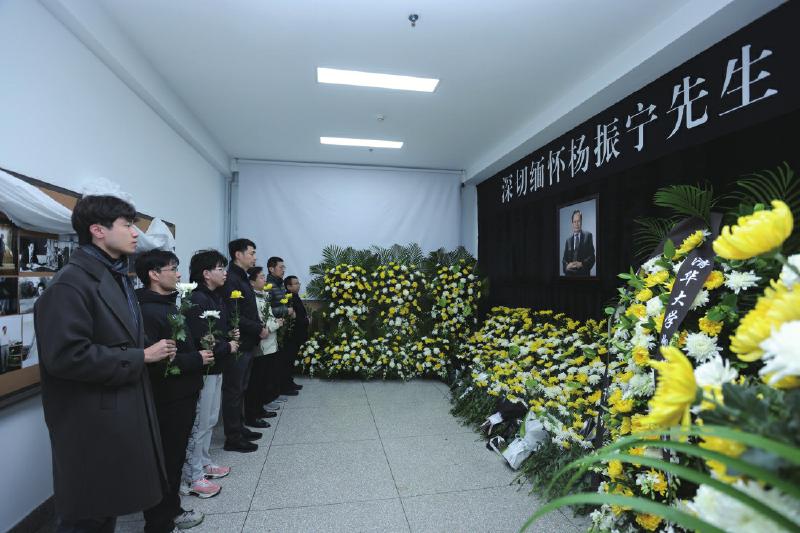 他们是来送别著名物理学家、清华大学教授杨振宁先生的。杨先生生前倾注心血打造的学术高地——清华大学高等研究院便位于此。杨先生于10月18日逝世后,学校在馆内119室设立缅怀室,接受校内师生及各界相关人士吊唁。