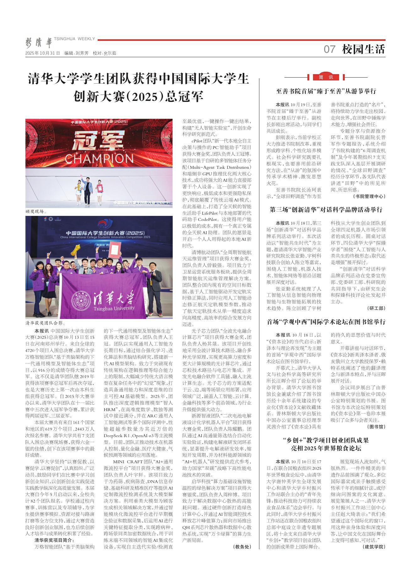 清华大学学生团队获得中国国际大学生创新大赛(2025)总冠军