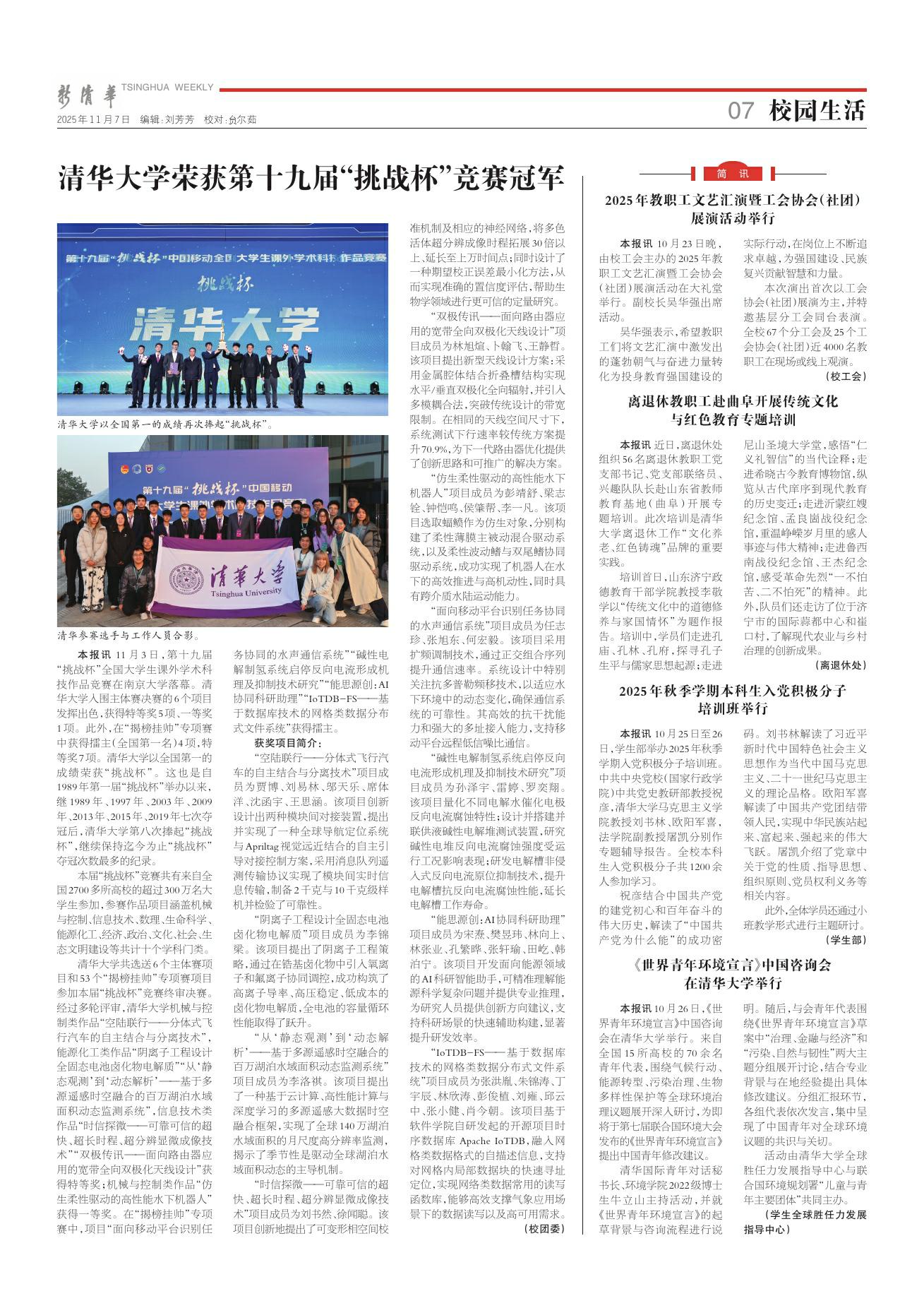 新清华 2025年11月07日 第2381期 校园生活