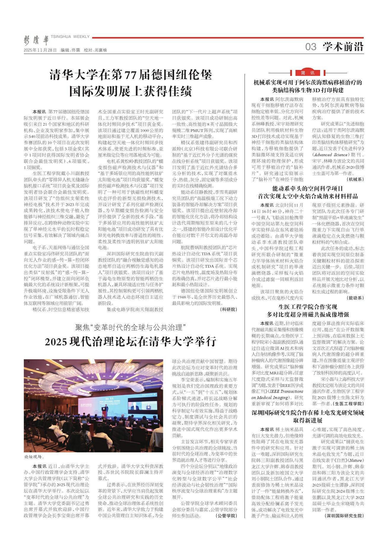 新清华 2025年11月28日 第2384期 学术前沿
