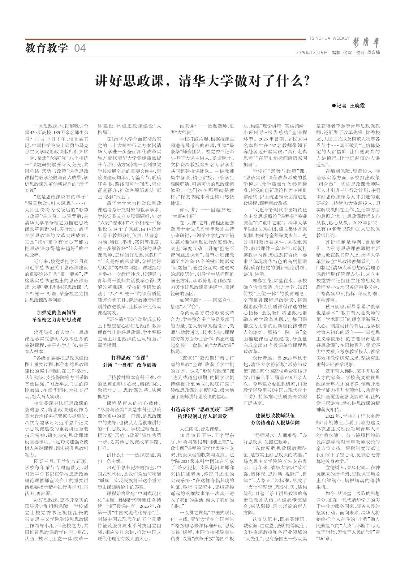 新清华 2025年12月05日 第2385期 教育教学