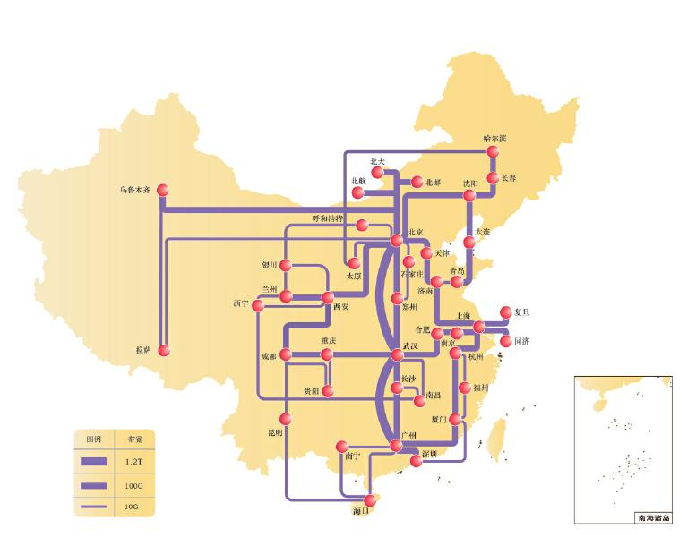 未来网络试验设施覆盖全国35个城市、连接40个高校试验节点(包括40个核心节点和40个试验站点),主干带宽达到100千兆比特每秒(其中部分达到1.2万亿比特每秒),实现与国内外互联网互联互通。未来网络试验设施在基础网络保持稳定的环境下,能为各类试验用户提供灵活多样的分层试验服务,是目前世界上规模最大的互联网试验设施。