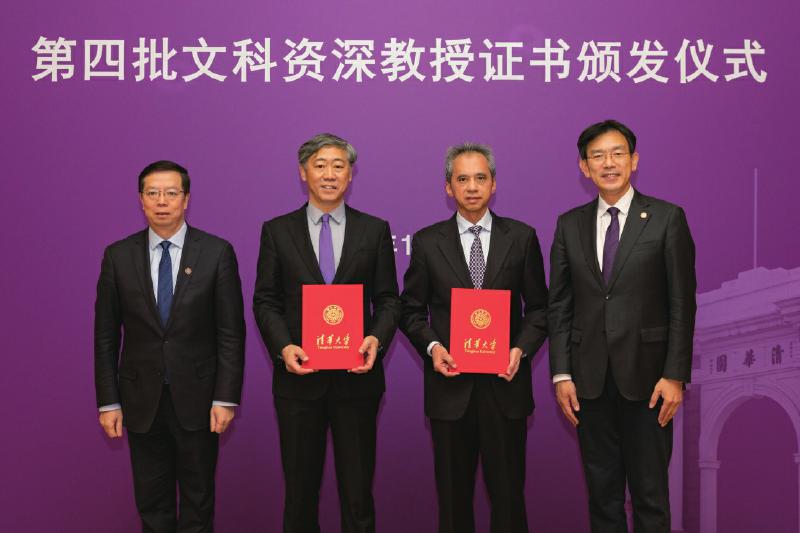 会上举行了清华大学第四批文科资深教授证书颁发仪式。文科资深教授是清华大学面向哲学社会科学领域教师设立的最高学术荣誉称号,经管学院陈剑、社科学院李稻葵2位教授入选第四批文科资深教授。